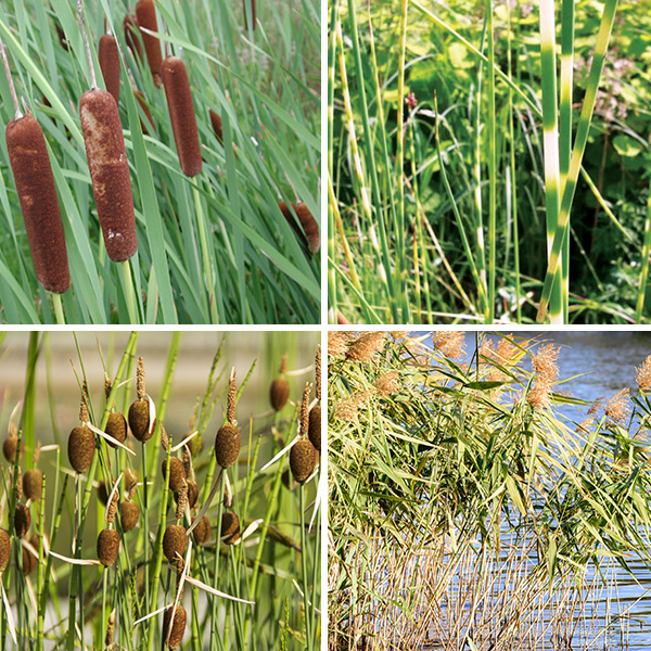 Often known as shoreline weeds, emergent pond weeds feature stiff stalks rooted in the shallow edges of your pond, with most of the plant emerging out of the water. Common emergent weeds include cattails, bulrush, Phragmites, and shoreline grasses.